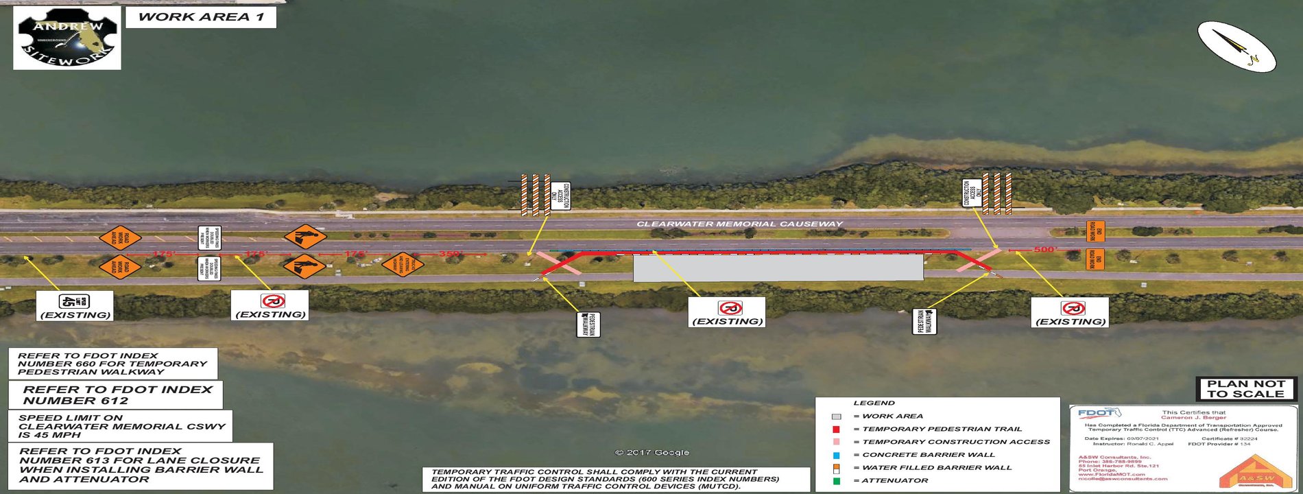 We design site-specific custom traffic control plans using modern computer design software (RapidPlan, AutoCAD) with satellite, aerial, and ground-level images of roadways. This allows us to produce highly detailed plans for almost any road in America. Our industry leading MUTCD compliance plans have a clean and professional single-page layouts, which is more intuitive to understand compared to expensive multi-page engineered plans that are generally required for major roadway improvements. This allows us to produce highly detailed traffic control plans without the need for expensive on-site visits. We can accompany any of TCP/MOT plan designs with our in-house traffic control specialist, in accordance with the latest manual on uniform traffic control devices (MUTCD) and local agencies standards.